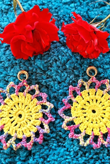 En Van Art tenemos una gran variedad de pendientes hechos en crochet, que unen moda y artesanía, ideales para quienes buscan destacar con un estilo único y diferente. Cada pieza está tejida a mano con mucha dedicación, son ligeros, cómodos y llenos de color, por lo que son perfectos para cualquier ocasión.
